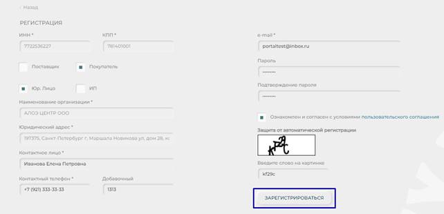 После ввода всех данных необходимо нажать «Зарегистрироваться», как показано на рисунке 3.1.5.