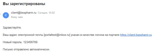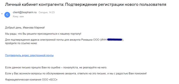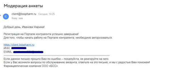 Рисунок 3.2.3 — Информационное письмо об успешной регистрации на портале
