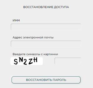 Необходимо ввести ИНН, адрес электронной почты, по которому осуществлялась регистрация клиента, и пароль, нажать «Вход».