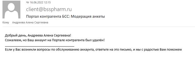 Рисунок 9.6.4 — Информационное почтовое сообщение об отказе в согласовании рекламации