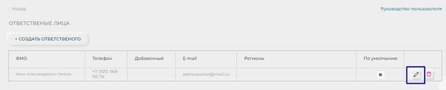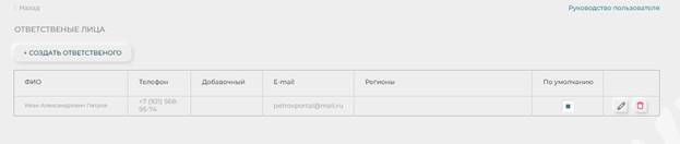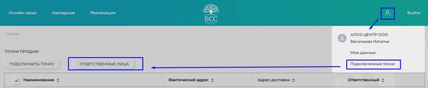Ответственное лицо – учетная запись сотрудника контрагента. Ответственное лицо регистрируется/изменяется на портале клиентом, устанавливается ответственным за определенные точки продаж также клиентом. Ответственному лицу доступно оформление заказов и рекламаций, просмотр накладных только на те точки продаж, у которых пользователь указан ответственным.