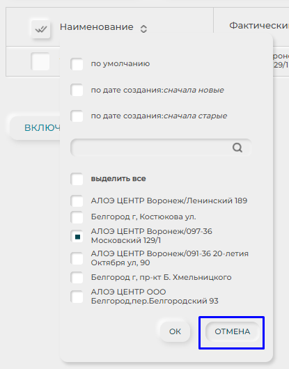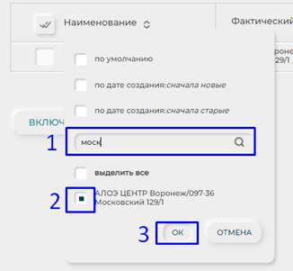 , затем выбрать из списка адрес. Допустимо через поле «поиск» осуществлять