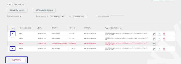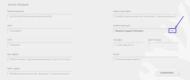 При авторизации ответственного лица доступны для просмотра, редактирования и оформления заказы только по тем точкам продаж, у которых пользователь указан ответственным. |