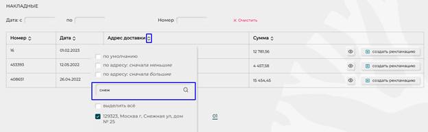 Рисунок 9.2.6 — Настройка отбора по адресу доставки накладной