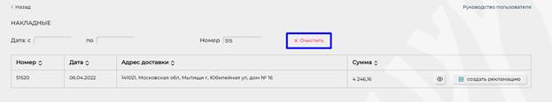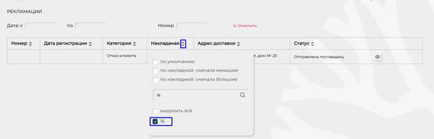 Рисунок 9.2.5 — Настройка отбора рекламаций по номеру накладной