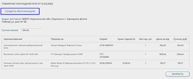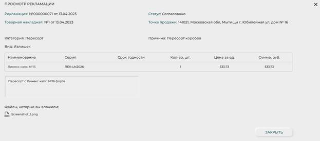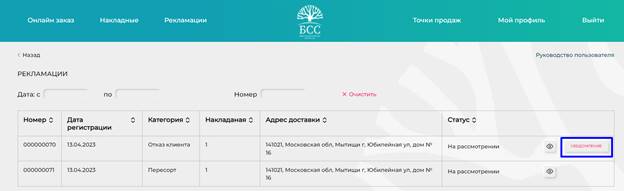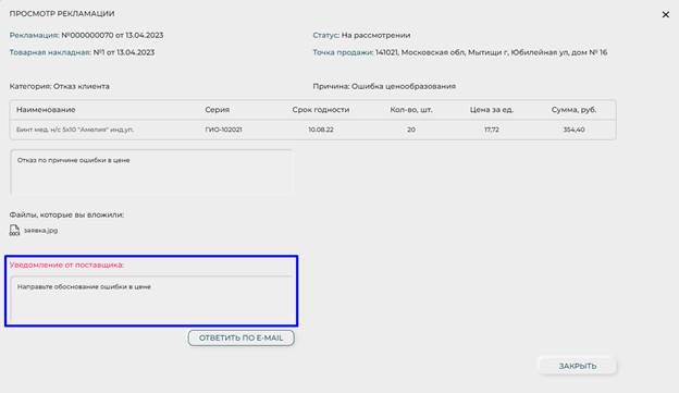 Рисунок 9.5.2 — Просмотр уведомления по рекламации