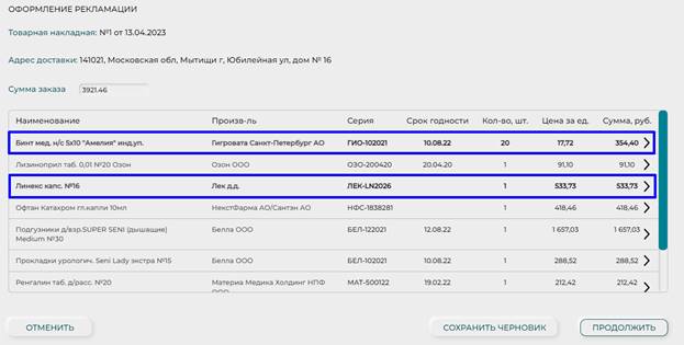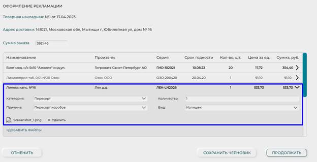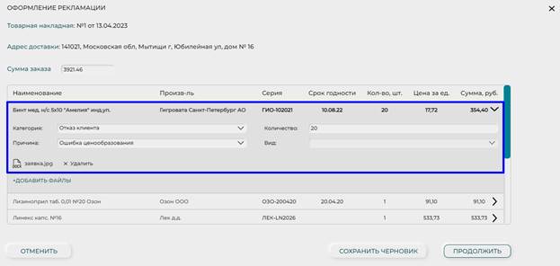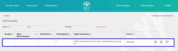Рисунок 9.3.3 — Рекламация в статусе «черновик»