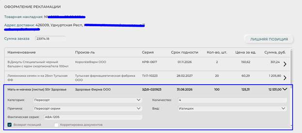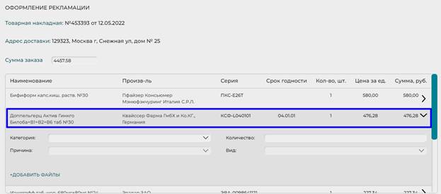 Рекламация – претензия от Пользователя к Компании по определенной накладной (документу продажи).