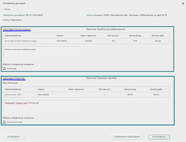 Внимание! Рекламация в статусе «Черновик» не имеет номера, даты и категории. Данные значения присваиваются после отправки рекламации поставщику на рассмотрение.