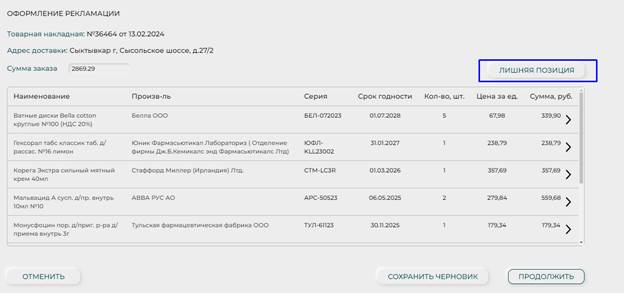 Рисунок 9.3.6 — Отмена подбора позиции в рекламацию