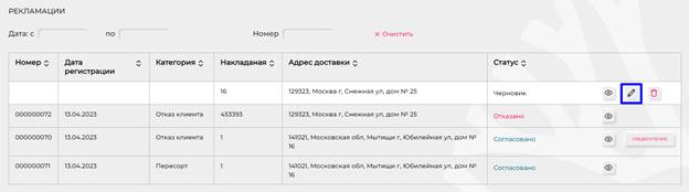 Рисунок 9.3.1 — Кнопка редактирования рекламации