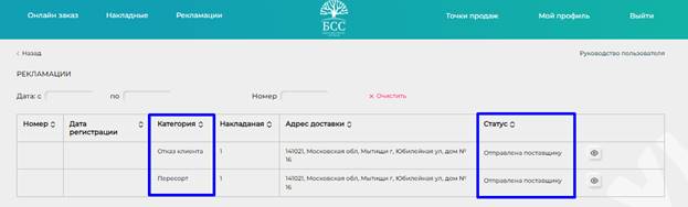 «Отказано» - поставщиком отказано в удовлетворении рекламации (рисунок 9.6.2).