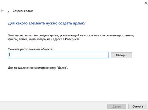Рисунок 10.2 — Окно создания ярлыка на рабочем столе