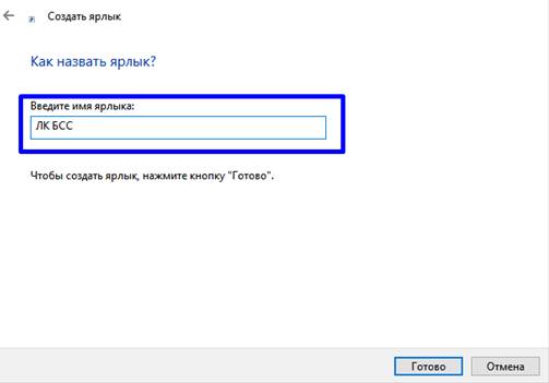 3) Нажать «Далее» → Ввести имя ярлыка для рабочего стола → Нажать «готово» (Рисунок 10.4).